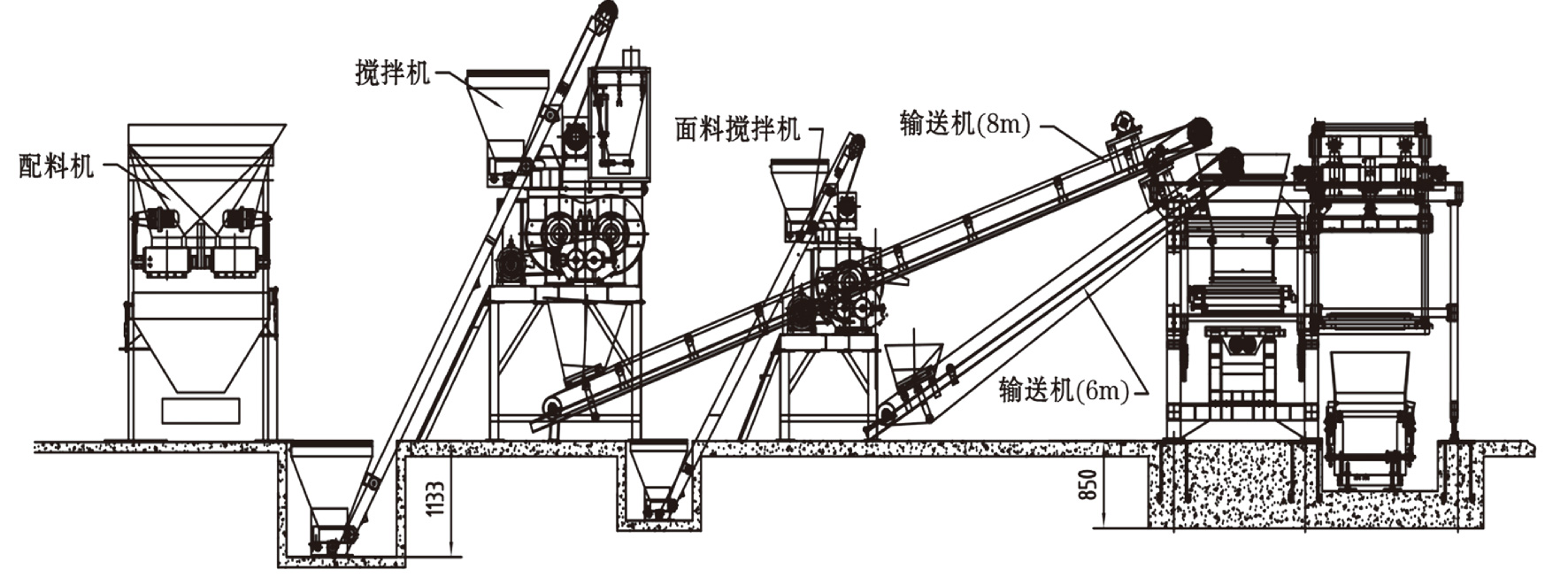 ● 采用懸掛式子母料車,布料時料車無需重復運動。運動陰力小,下料速度快,布料沖擊小,使用進口焊達耐磨板制造,不易磨損使用壽長。