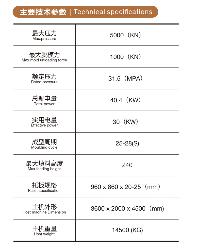 最大壓力 (KN) 5000 成型周期 (s) 25-28